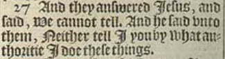 27 And they answered Iesus, and said, We cannot tell. And he said vnto them, Neither tell I you by what authoritie I doe these things.