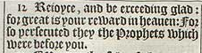 12 Reioyce, and be exceeding glad: for great is your reward in heauen: For so persecuted they the Prophets which were before you.