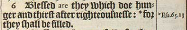 6 Blessed are they which doe hunger and thirst after righteousnesse: *for they shall be filled.[*Esa.65.13.]