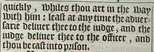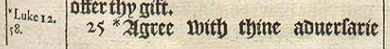 25 *Agree with thine aduersarie quickly, whiles thou art in the way with him: least at any time the aduersarie deliuer thee to the iudge, and the iudge deliuer thee to the officer, and thou be cast into prison.[*Luke 12. 58.]