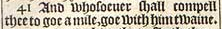 41 And whosoeuer shall compell thee to goe a mile, goe with him twaine.