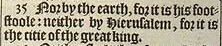 35 Nor by the earth, for it is his footstoole: neither by Hierusalem, for it is the citie of the great king.