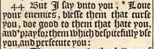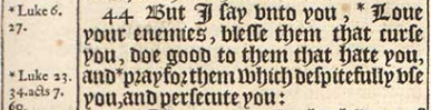 44 But I say vnto you, *Loue your enemies, blesse them that curse you, doe good to them that hate you, and *pray for them which despitefully vse you, and persecute you:[*Luke 6.27. , *Luke 23.34. acts 7.60.]