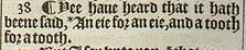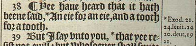 38 ¶ Yee haue heard that it hath beene said, *An eie for an eie, and a tooth for a tooth.[*Exod. 21. 24. leuit.24 20. deut.19 21.]