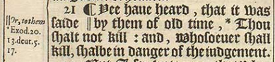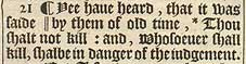 21 ¶ Yee haue heard, that it was saide || by them of old time, *Thou shalt not kill: and, Whosoeuer shall kill, shalbe in danger of the iudgement.[|| Or, to them , *Exod. 20. 13. deut.5. 17.]