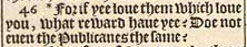 46 *For if yee loue them which loue you, what reward haue yee? Doe not euen the Publicanes the same?[*Luke 6.32.]