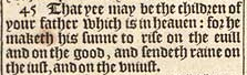 45 That yee may be the children of your father which is in heauen: for he maketh his sunne to rise on the euill and on the good, and sendeth raine on the iust, and on the vniust.
