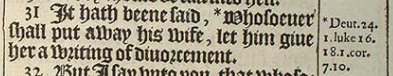 31 It hath beene said, *Whosoeuer shall put away his wife, let him giue her a writing of diuorcement.[*Deut.24. 1. luke 16. 18. 1.cor. 7.10.]