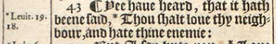 43 ¶ Yee haue heard, that it hath beene said, *Thou shalt loue thy neighbour, and hate thine enemie:[*Leuit.19.18.]