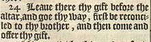 24 Leaue there thy gift before the altar, and goe thy way, first be reconciled to thy brother, and then come and offer thy gift.