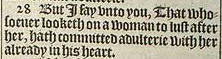 28 But I say vnto you, That whosoeuer looketh on a woman to lust after her, hath committed adulterie with her already in his heart.