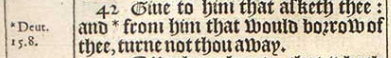 42 Giue to him that asketh thee: and *from him that would borrow of thee, turne not thou away.[*Deut. 15.8.]