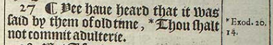27 ¶ Yee haue heard that it was said by them of old time, *Thou shalt not commit adulterie.[*Exod. 20. 14.]
