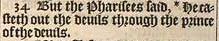 34 But the Pharisees said, *He casteth out the deuils through the prince of the deuils.[*Chap.12.24. marke 3.22. luke 11.15.]