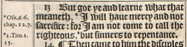 13 But goe ye and learne what that meaneth, *I will haue mercy and not sacrifice: for I am not come to call the righteous, *but sinners to repentance.[*Ose.6.6. chap.12.7. , *1.Tim.1.15.]