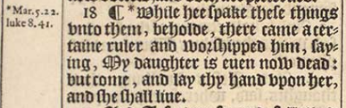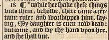 18 ¶ *While hee spake these things vnto them, beholde, there came a certaine ruler and worshipped him, saying, My daughter is euen now dead: but come, and lay thy hand vpon her, and she shall liue.[*Mar.5.22. luke 8.41.]
