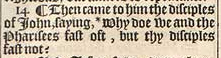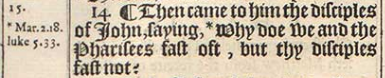 14 ¶ Then came to him the disciples of Iohn, saying, *Why doe we and the Pharisees fast oft, but thy disciples fast not?[*Mar.2.18. luke 5.33.]
