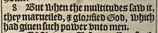 8 But when the multitudes saw it, they marueiled, & glorified God, which had giuen such power vnto men.