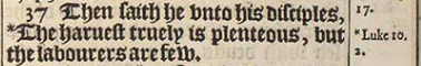 37 Then saith he vnto his disciples, *The haruest truely is plenteous, but the labourers are few.[*Luke 10.2.]