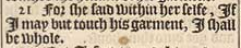 21 For she said within her selfe, If I may but touch his garment, I shall be whole.
