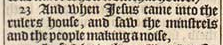 23 And when Iesus came into the rulers house, and saw the minstrels and the people making a noise,