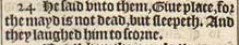 24 He said vnto them, Giue place, for the mayd is not dead, but sleepeth. And they laughed him to scorne.