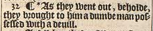 32 ¶ *As they went out, beholde, they brought to him a dumbe man possessed with a deuill.[*Luke 11.14.]