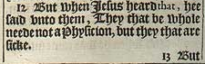 12 But when Iesus heard that, hee said vnto them, They that be whole neede not a Physicion, but they that are sicke.