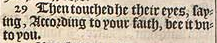 29 Then touched he their eyes, saying, According to your faith, bee it vnto you.