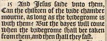 15 And Iesus saide vnto them, Can the children of the bride-chamber mourne, as long as the bridegrome is with them? But the dayes will come when the bridegrome shall bee taken from them, and then shall they fast.