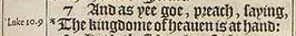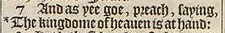 7 And as yee goe, preach, saying, *The kingdome of heauen is at hand:[*Luke 10.9.]