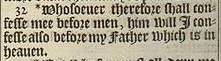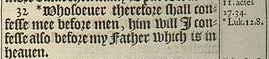 32 *Whosoeuer therefore shall confesse mee before men, him will I confesse also before my Father which is in heauen.[*Luk.12.8.]
