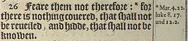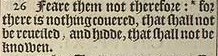 26 Feare them not therefore: *for there is nothing couered, that shall not be reueiled; and hidde, that shall not be knowen.[*Mar.4.22. Luke 8.17. and 12.2.]