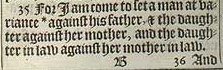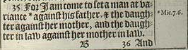 35 For I am come to set a man at variance *against his father, & the daughter against her mother, and the daughter in law against her mother in law.[*Mic. 7.6.]