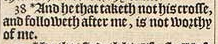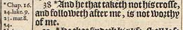 38 *And he that taketh not his crosse, and followeth after me, is not worthy of me.[*Chap. 16. 24. luke. 9. 23. mar. 8. 34.]