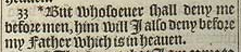 33 *But whosoeuer shall deny me before men, him will I also deny before my Father which is in heauen.[*Mar.8.38. Luke 9.26. 2.tim.2.12.]