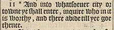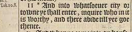 11 *And into whatsoeuer city or towne ye shall enter, inquire who in it is worthy, and there abide till yee goe thence.[*Luk.10.8.]