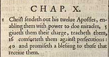 1 Christus sendet seine zwölf Apostel aus, befähigt sie mit der Macht Wunder zu tun, 5 gibt ihnen ihren Auftrag, lehrt sie, 16 spricht ihnen Mut gegen Verfolgungen zu: 40 und verspricht denen, die sie empfangen einen Segen.