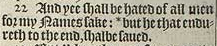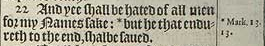 22 And yee shall be hated of all men for my Names sake: *but he that endureth to the end, shalbe saued.[*Mark. 13.13.]