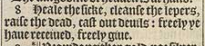 8 Heale the sicke, cleanse the lepers, raise the dead, cast out deuils: freely ye haue receiued, freely giue.