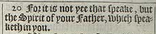 20 For it is not yee that speake, but the Spirit of your Father, which speaketh in you.