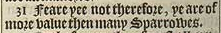 31 Feare yee not therefore, ye are of more value then many Sparrowes.
