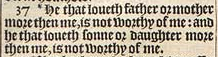 37 *He that loueth father or mother more then me, is not worthy of me: and he that loueth sonne or daughter more then me, is not worthy of me.[*Luke 14.26.]