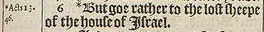 6 *But goe rather to the lost sheepe of the house of Israel.[*Acts 13.46.]