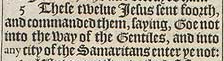 5 These twelue Iesus sent foorth, and commanded them, saying, Goe not into the way of the Gentiles, and into any city of the Samaritans enter ye not: