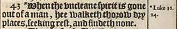 43 *When the vncleane spirit is gone out of a man, hee walketh thorow dry places, seeking rest, and findeth none.[*Luke 11.24.]
