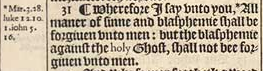 31 ¶ Wherefore I say vnto you, *All maner of sinne and blasphemie shall be forgiuen vnto men: but the blasphemie against the holy Ghost, shall not bee forgiuen vnto men.[*Mar.3.28. luke 12.10. 1. iohn 5.16.]