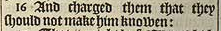 16 Und verlangte von ihnen, dass sie ihn nicht bekannt machen sollten: