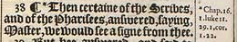 38 ¶ *Then certaine of the Scribes, and of the Pharisees, answered, saying, Master, we would see a signe from thee.[*Chap.16.1. luke 11.29. 1.cor. 1.22.]