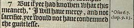 7 But if yee had knowen what this meaneth, *I will haue mercy, and not sacrifice, yee would not haue condemned the guiltlesse.[*Osee 6. 7. chap. 9. 13.]